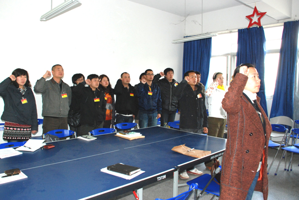 12月9日,艺术学院还对3名新发展的教职工预备党员进行了授牌,全体教职工党员和预备党员佩戴胸牌,面对党旗进行了庄严宣誓。