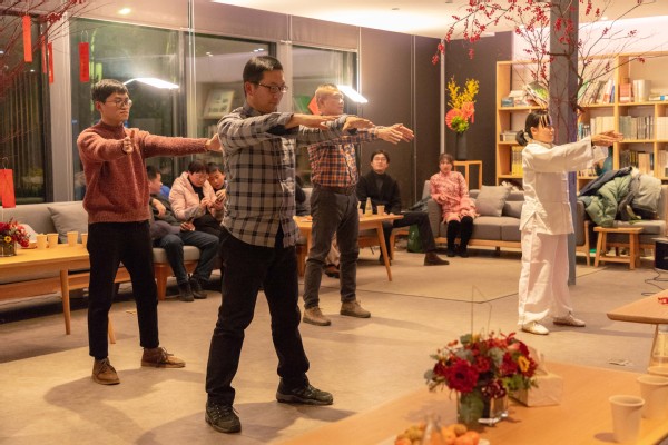 在随后进行的表演、游戏、分享环节,嘉宾和全体教师轮番上阵。歌曲、中华诗词大会、你画我猜、太极拳表演、嘉宾育儿经验分享好戏连连。现场气氛热烈,掌声、欢笑声此起彼伏,现场弥漫着同事间浓浓的深情。