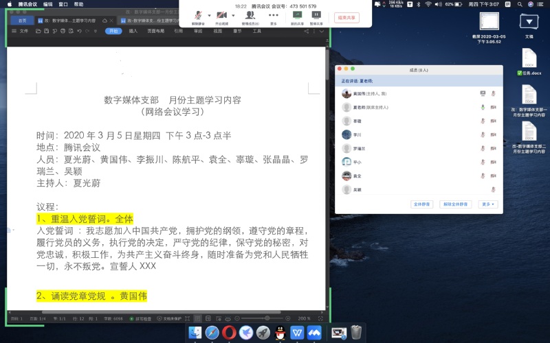 武职网讯(通讯员 陈航平)3月5日下午,艺术设计学院数媒党支部运用“腾讯会议”线上平台,组织开展“不忘初心,牢记使命”、“坚决打赢疫情防控阻击战”主题党日活动。