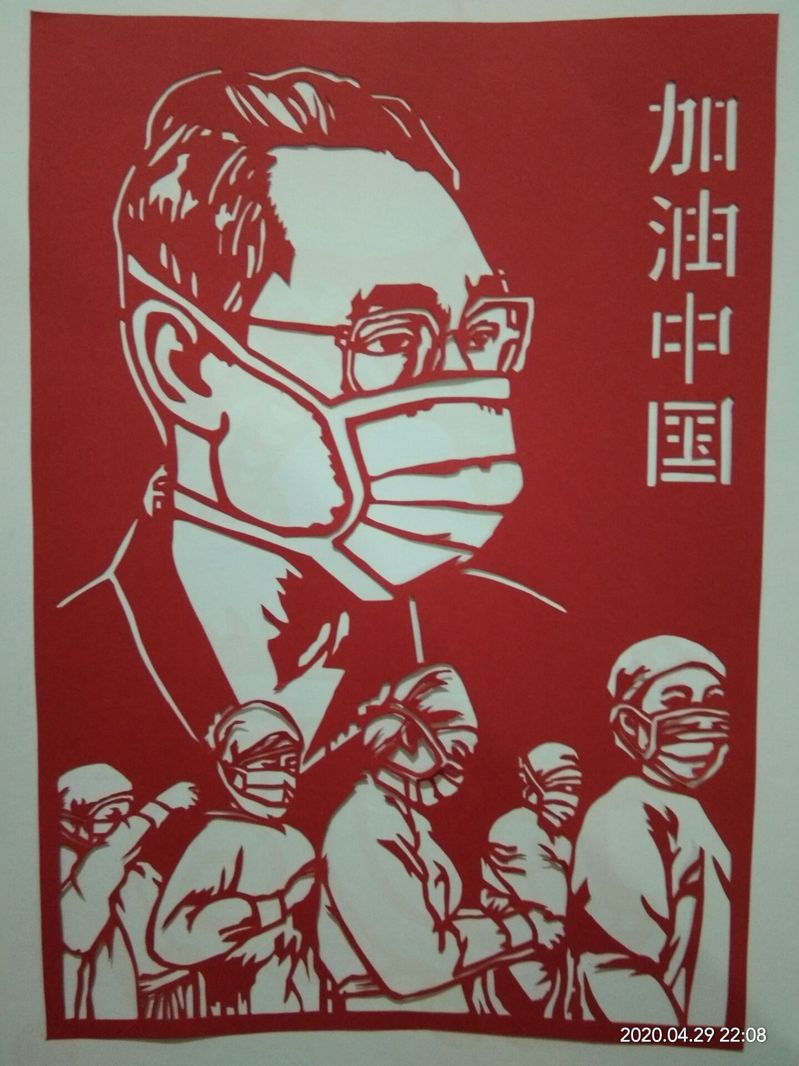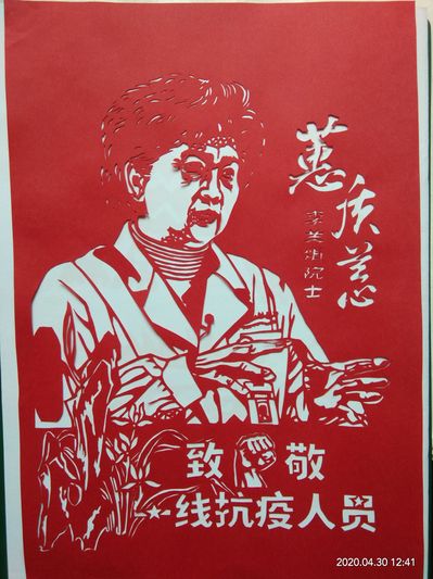 “这是一场没有硝烟的战争,当从各个平台获知无论是84岁高龄的钟南山院士,还是90后的白衣天使,在国家最需要的时候,他们奔赴武汉、驰援湖北,用行动和信念践行不忘初心、牢记使命,我深受感动。第一时间,我们就想用剪纸将他们的英雄形象刻画出来。”2019级徐杨、刘以鹏,2018级高迎澳等人以平面单剪法,运用阴阳结合镂空技法,创作了“平凡的逆行者”英雄人物剪纸作品,表达了对平凡的抗疫英雄的表达深厚的敬意和感恩,表达了对他们的赞美级对抗疫必将迎来胜利的信心。