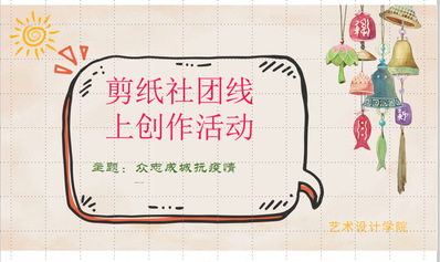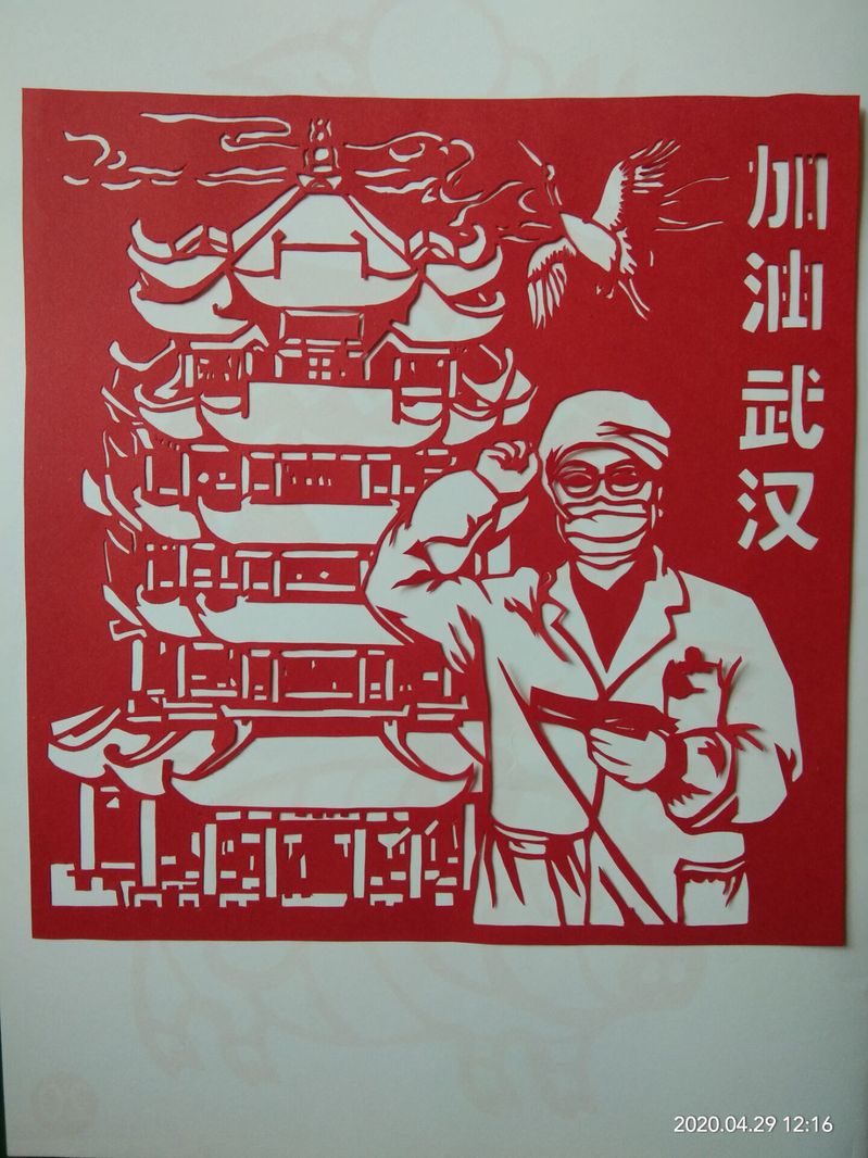 武职网讯(通讯员 熊泽秀) 小小一把剪,薄薄一张纸,艺术设计学院剪云社四月在行动。“众志成城抗疫情”主题剪纸社团活动凝聚起“战疫”的强大正能量。剪云社的会员们积极行动起来,用手中的纸和剪刀创作出一幅幅惟妙惟肖、栩栩如生,具有美好寓意的作品,为奋战在疫情防控一线的工作者加油,为武汉加油,为中国加油。