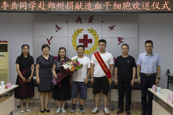 2020年7月7日,河南省漯河市红十字会专门为李岳赴郑州捐献造血干细胞举行欢送仪式,他也是漯河市首位捐献造血干细胞的在校大学生。面对众多的赞许,李岳显得有些羞涩,“其实我也没做什么,只是尽了自己一份微薄之力而已。我现在更多的感受是幸运,幸运的是有机会挽救一个生命。希望通过我的真实经历,告诉身边的人,捐献造血干细胞一点都不可怕,只要多一份坚定,就能点亮他人希望之光,这事很值!”