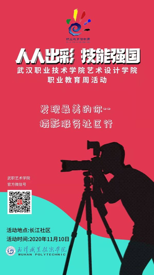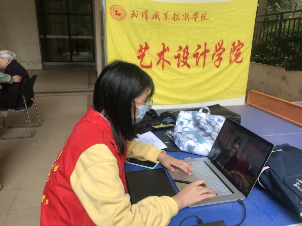 11月10日上午,武汉职业技术学院艺术设计学院分工会会员带领数媒专业影像媒体方向的同学们走进长江社区参与社区的便民服务活动,为社区居民免费提供专业摄影服务。这是武职艺术学院2020年职教活动周之“发现最美的你——摄影服务社区行”。