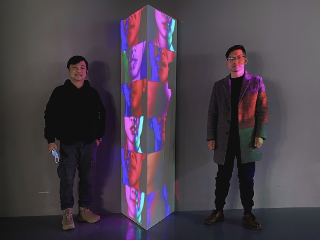 袁全(右一)、周禹影像装置作品《一堂艺术课》