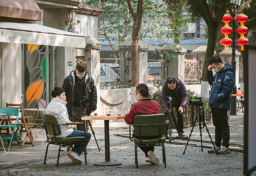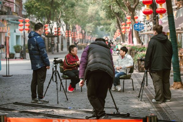2月1日下午,阳光透过树丛洒在黎黄陂路青石板路上,路两旁挂满的红色灯笼和马路上川流不息的人流车流无不透着浓浓的年味。马路侧旁,一张圆桌、三张凳子、一个移动书房,形成了一个露天访谈室,基层干警、医护人员、快递小哥、志愿者等来到这里聊工作、谈乡愁,讲述武汉的本土年味。参加访谈的有的是夫妻,有的是战友,还有的是翁婿,去年因为疫情不能回家,今年响应号召选择留在武汉过年。艺术学院英才计划的师生正用镜头记录下他们的乡愁和梦想!