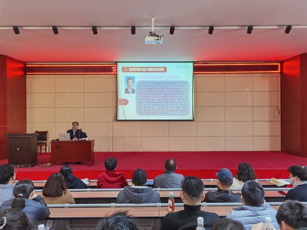 武职网讯 (通讯员 李思凯 摄影 刘波 )12月23日下午,校长鄢烈洲在凌曦楼A3001为和艺术设计学院和电子信息工程学院全体教职工作了题为《汲取百年历史伟力,开启新的伟大征程》 学习贯彻党的十九届六中全会精神专题宣讲报告。