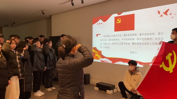 武职网讯(通讯员冯堃堃)矢志不渝跟党走,不负韶华逐梦行。12月28日,艺术设计学院新党员入党宣誓仪式在德艺楼一楼展厅举行。2021年新发展的28名学生党员,43名入党积极分子,学生党支部全体教师党员参加仪式。