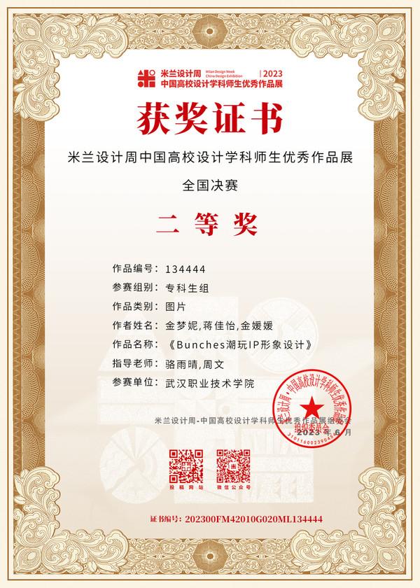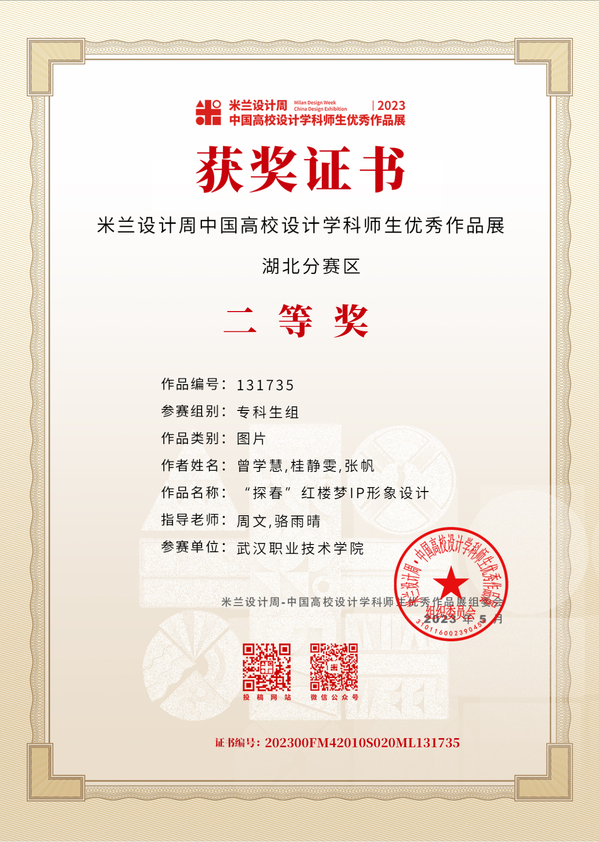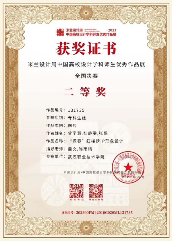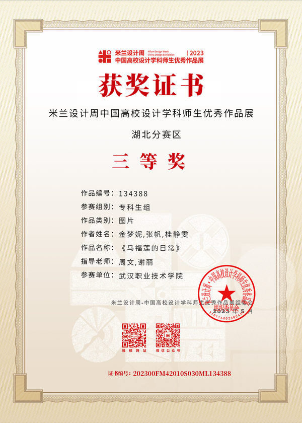 武职网讯(通讯员 骆雨晴)近日,第七届米兰设计周——中国高校设计学科师生优秀作品展(全国决赛)公布获奖结果,武汉职业技术学院艺术设计学院学子斩获非命题赛道全国二等奖2项,湖北赛区一等奖、二等奖、三等奖各1项。