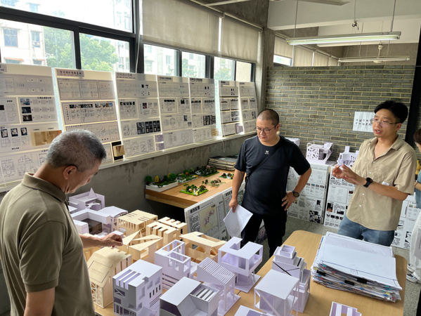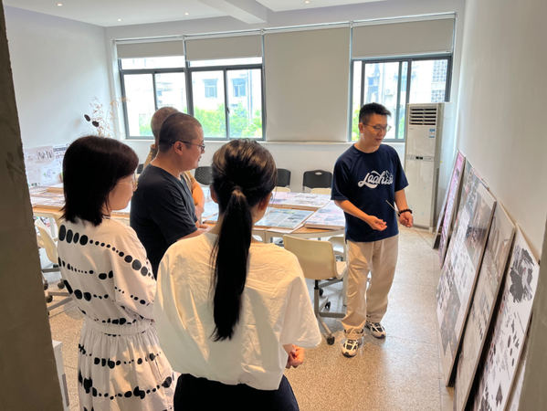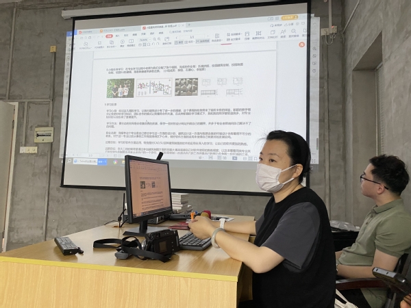 当日上午进行的是教师汇报环节,各专业工作室教师针对本学期所担任的课程进行梳理回顾、反馈和总结。环艺工作室教师李思凯担任环艺22301班《空间设计思维基础》的教学,作为该专业的一门主要基础课程,重点是了解空间概念、建立空间感知并掌握空间绘图和造型能力,是带领学生从“素人小白”迈向“专业高手”的必经之路。他表示在上课之初就十分注重强调学生培养持之以恒、严谨细致的工匠精神和感知美、发现美的能力,特别是现在人工智能、AI绘图等新技术飞速发展对设计行业带来冲击的情况下,很多基础的绘图工作逐渐会被人工智能取代,如何转“危”为“机”?“这就要求我们的教学必须更加注重以“人”为本,激发学生的想象力和创造力,更要顺应时代发展做出调整,否则就会遭到淘汰,”李思凯如是说到。