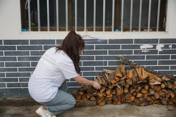 团队成员为村民摆放木柴