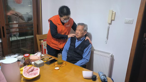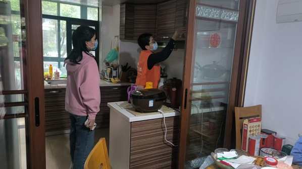 志愿者为老人整理家务