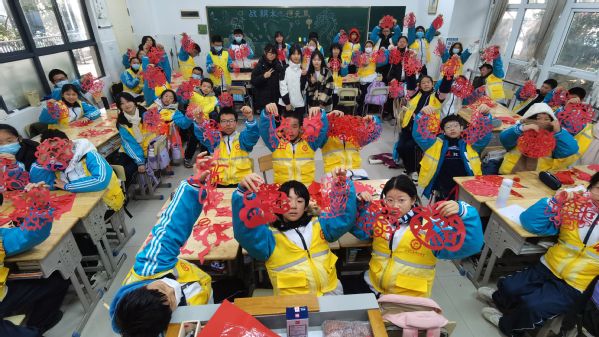 活动临近尾声,剪云社三位社员将一副庆龙年元旦的“2024”剪纸作品赠予初一30班,以志纪念。至此,本次《剪纸——中国传统文化》体验课程圆满结束。