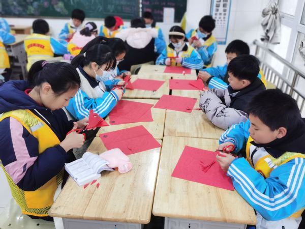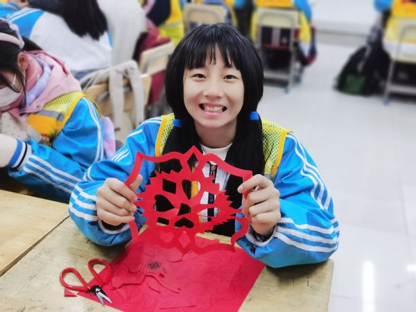 在艺术学院剪云社师生的悉心指导下,爱好剪纸的少年们遵循安全第一的要求,在纸上刻画出自己的小小世界。刚刚接触剪纸的学生剪出了小巧玲珑的窗花,上手快的更是发挥想象力,创作出了别具一格的剪纸作品。