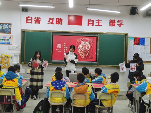 武职网讯(通讯员 熊泽秀 大学生记者 乔晓丹)12月19日,艺术设计学院剪云社三名优秀社员在指导老师带领熊泽秀带领下,走进武汉光谷实验中学,为该校剪纸爱好者们举行了一堂别开生面的《剪纸——中国传统文化》体验课程。