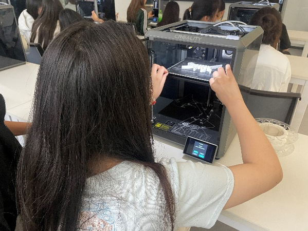 随后,学生们在企业人员指导下完成从模型设计到实体打印的全流程操作。产品 24301 班吴清莹感叹:“3D打印实践太有趣了。在企业生产线完成从创意到实物的转化,让我真切感受到职业教育与产业需求的无缝对接,对接下来的专业学习和职业发展方向有了更清晰的规划。”