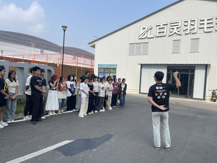 考察活动的第二阶段,云世教育的校长专程来到现场,为师生们介绍了项目对面户外活动场景的未来规划,并结合规划蓝图详细阐述了户外公园、各类运动场所及无人机培训基地的设计理念、功能定位与建设进度,让学生们对项目的整体规划与未来发展有了更全面的认识。期间,环艺23302 班的雷潇颖同学分享了自己的特殊经历,她和班长陈智昂曾在吴妮老师的指导下,参与了该项目前期概念设计及软装设计工作。此次再次来到项目现场,亲眼看到自己参与设计的图纸一步步转化为实际建筑,见证项目从无到有、不断完善的变化过程,雷潇颖同学激动地表示:“看到自己画的图纸像魔术一样慢慢实现,那种成就感难以言表,也更加坚定了我在环境艺术设计领域继续深耕的决心。”