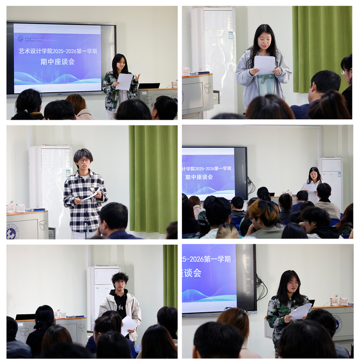 学生代表在座谈环节积极发言,围绕课堂教学、实践环节、教学设施等方面进行反馈。大家普遍反映,项目驱动式的实践课程获得感更强,同时希望教学硬件设施能同步升级。其中,《综合设计》、《商业插画》、《展示设计》、《无人机飞行》、《视觉艺术表达基础》等课程因内容前沿、实战性强而广受好评。学子们还分享了参与企业考察的体会,认为往届学长学姐在岗位上的示范引领作用显著,增强了自身的职业认知与规划意识。