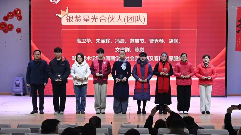 新闻网讯(通讯员 陈岚)1月10日,武汉市江夏区藏龙社区2025年度志愿服务总结暨老年大学结业典礼在藏龙第三小学学术报告厅举行。武汉职业技术大学艺术设计学院凭借两年来在社区老年大学持续深耕的非遗剪纸公益培训服务,斩获“金桥贡献奖”,剪纸社团指导老师陈岚、熊泽秀获“银龄星光合伙人(团队)”相关荣誉。两份荣誉,是社区对艺术设计学院长期扎根基层开展公益服务、助力社区文化建设的高度认可。