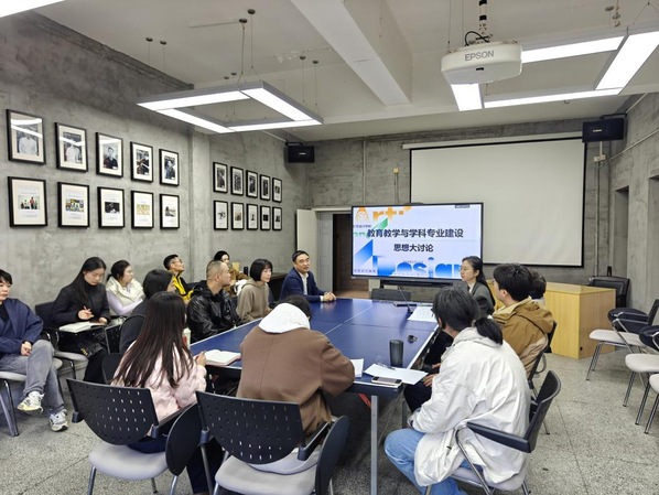 数字媒体艺术设计专业教师聚焦“五金”建设展开深入研讨:探讨如何对接数字创意产业需求打造链主专业群,研究模块化课程体系构建与数字化教学资源开发,交流双师型教师培养路径,谋划校内外实训条件升级,讨论新型活页式教材编写与行业标准融入。教学办公室与学工办公室围绕管理服务与育人实效进行了务实交流。教学服务方面,建议进一步强化实训室安全管理与责任机制,优化转专业、复学学生的课程补修管理,深化职业标准与教学过程的融合;学生服务方面,围绕丰富劳动教育形式、改善学习环境、落实“五育并举”等分享了工作思路。